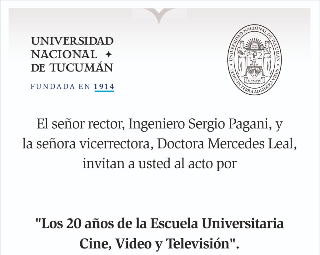El señor rector de la UNT, Ingeniero Sergio Pagani y la señora vicerrectora, Doctora Mercedes Leal, con adhesión de la dirección de la EUCVyTV, invitan a Ud. al acto de[…]